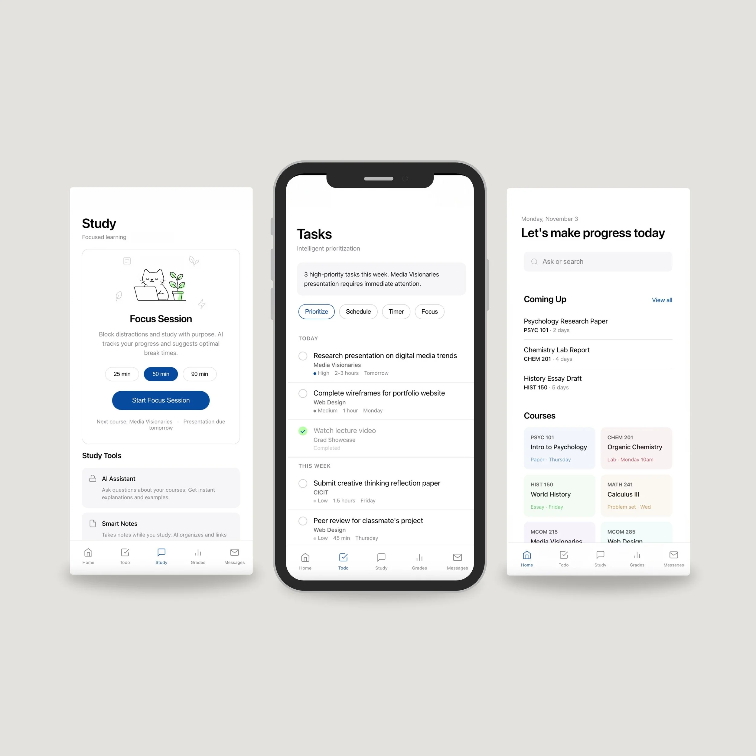 A seamless mobile-first learning ecosystem where tasks, notes, and study tools come together to help students focus on what matters most.