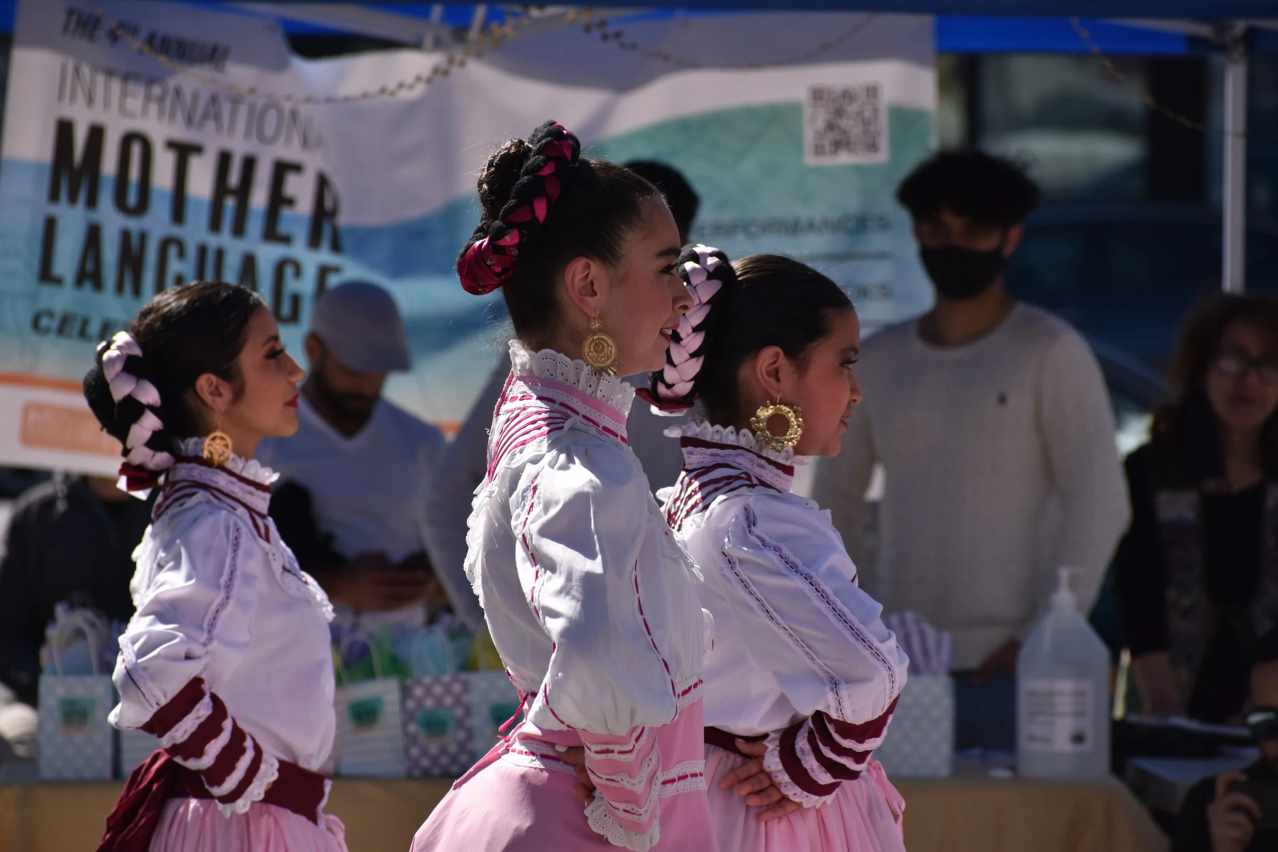 The celebration brings together South Indian classical dancers, Mexican folklórico groups, Chinese performing artists, Mayan dancers, and Armenian and Turkish folk traditions, each group helping shape the event rather than just performing in it. Young artists submit work exploring their linguistic identity, accompanied by statements about how their mother language influences their creative voice. We rotate venues between the Children's Discovery Museum, Parque de los Pobladores, and neighborhood centers, partnering with local businesses for prizes. This distributed model means the celebration belongs to the entire community, not just one institution.