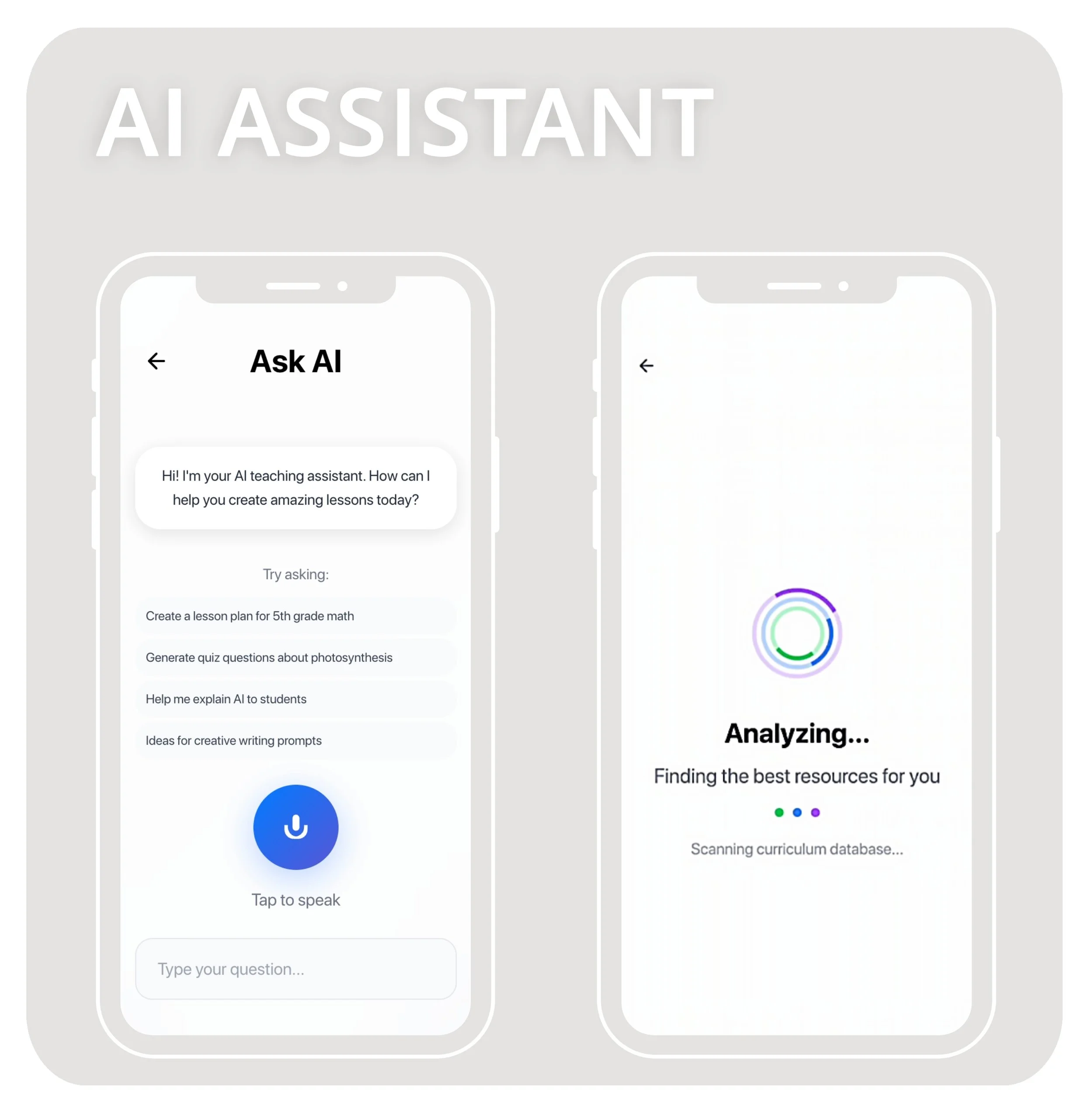 A minimalist voice-first interface for a dynamic conversational experience suitable for busy teachers.